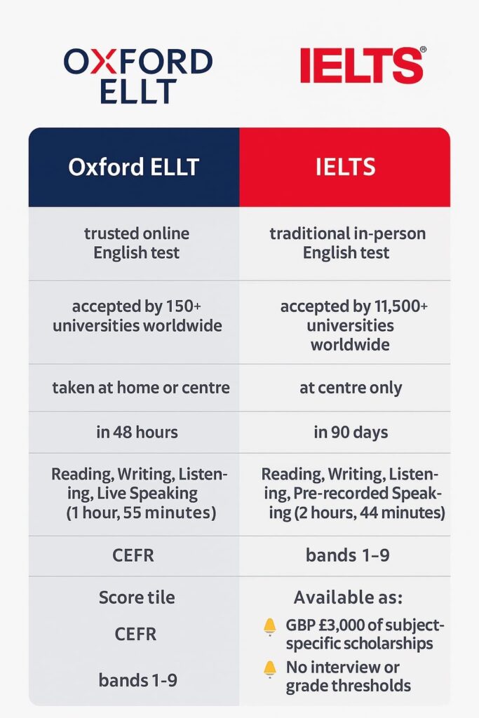The Oxford English Language Level Test (ELLT), formerly known as OIETC (Oxford International English Test Centre), is a fully online English proficiency examination accepted by over 150 UK universities.